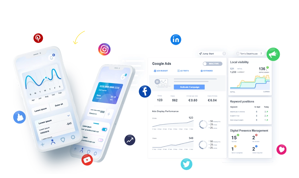 Climb the ladder of success by accumulating more leads and sales with our digital marketing services. We will help you achieve a substantial ROI in a little time with search engine optimization, social media marketing, and Google Ads with our tried and tested strategies.